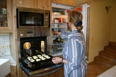 Der Heißluft-Backofen arbeitet mit Hilfe des Ringheizkörpers und dem Hochleistungsgebläse sehr effizient. Die Wärme wird bis in die äußerste Ecke des Backraumes transportiert. Das Ergebnis: gleichmäßige Bräunung auf allen Ebenen im Backofen.